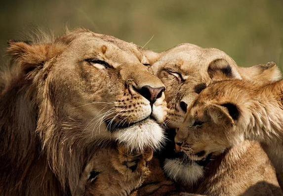 狮群是个大家庭,通常有15到18只狮子。里面只有一头成年雄狮当老大,叫狮王,偶尔有两头雄狮,但老大永远只有一个。母狮怀孕后,会找个隐蔽的地方生崽子,一胎通常生2到4只。小狮子出生后,母狮得哺乳6个月。狩猎时,母狮A出去找吃的,母狮B就帮忙看孩子,轮流当“保姆”。